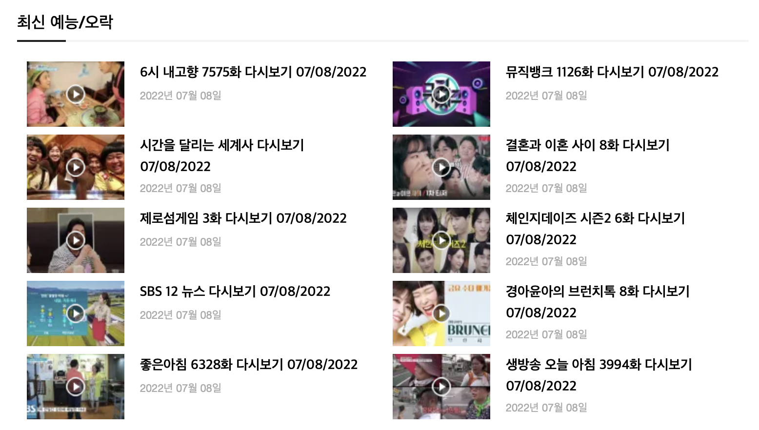 타키티비는 최신 드라마와 최신 예능 무료 다시보기가 주 컨텐츠로 홈페이지 첫 화면에 가장 크게 표시해주고 있습니다. 빠르게 업데이트 되어서 드라마와 예능은 쉽게 다시보기가 가능합니다. 카테고리 별로 나누어져 있으며 드라마, 예능, 시사/교양, 영화로 확인해 볼 수 있습니다. 타키티비 무료 다시보기 사이트로 파일을 직접 다운로드 받는 방식이 아닌 스트리밍 형식으로 볼 수 있습니다.