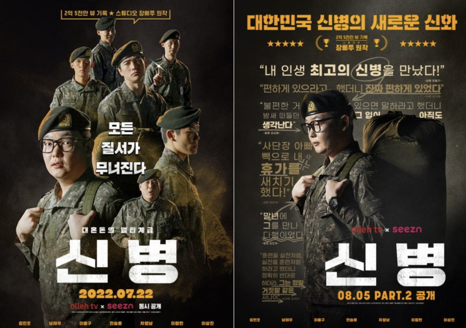 매주 토요일 방영이 되는 ENA 드라마 신병은 주1회 방영으로 계획이 되어 있습니다. 제작 당시부터 싱크로율이 좋다라는 평을 들으며 금수저보다 더한 군수저 신병이 나타나게 되면서 벌어지는 병영 드라마 신병은 Part.1과 Part.2로 기획이 되어 있으며 원작과는 또 다른 재미를 느낄 수 있는 드라마가 되겠습니다. 작중 배경은 2010년을 기준으로 하고 있으며 아무래도 구형 군복이 아닌 신형 군복이라는 것이 조금 아쉬운 부분일 수 있겠습니다. 그러나 그것을 제외하고는 원작을 기준으로 정말 잘 만들었다는 평을 받을 수 밖에 없습니다. 남자라면 공감이라서 더욱 재미있고 딱딱한 군생활을 재미있게 표현해서 여자분들도 보기 좋은 신병 Part.1 어떻게 볼수 있을까요?