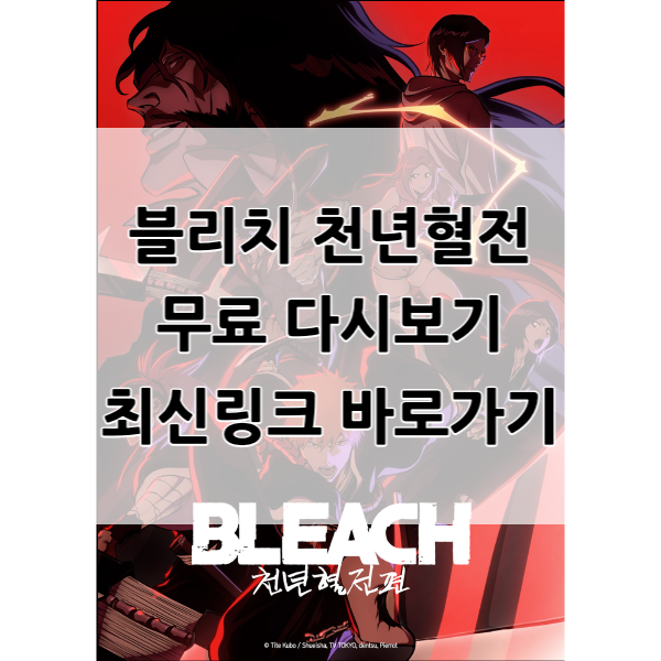 블리치의 최종작이 드디어 애니메이션으로 시작되었습니다. 애니메이션을 기다리셨던 분들에게 정말 희소식이 아닐 수가 없는데요. 디즈니플러스에서 방영할 줄 알았던 블리치 천년혈전은 국내에서는 애니박스에서 방영합니다. 총 52화로 방영할 예정이며 2022년 11월 현재 진행형으로 방영하고 있습니다. 매화 방영이 될 때마다 기다리시는 분들이 많으신데요. 무료 시청하는 방법을 간단히 정리해서 알려드리겠습니다.