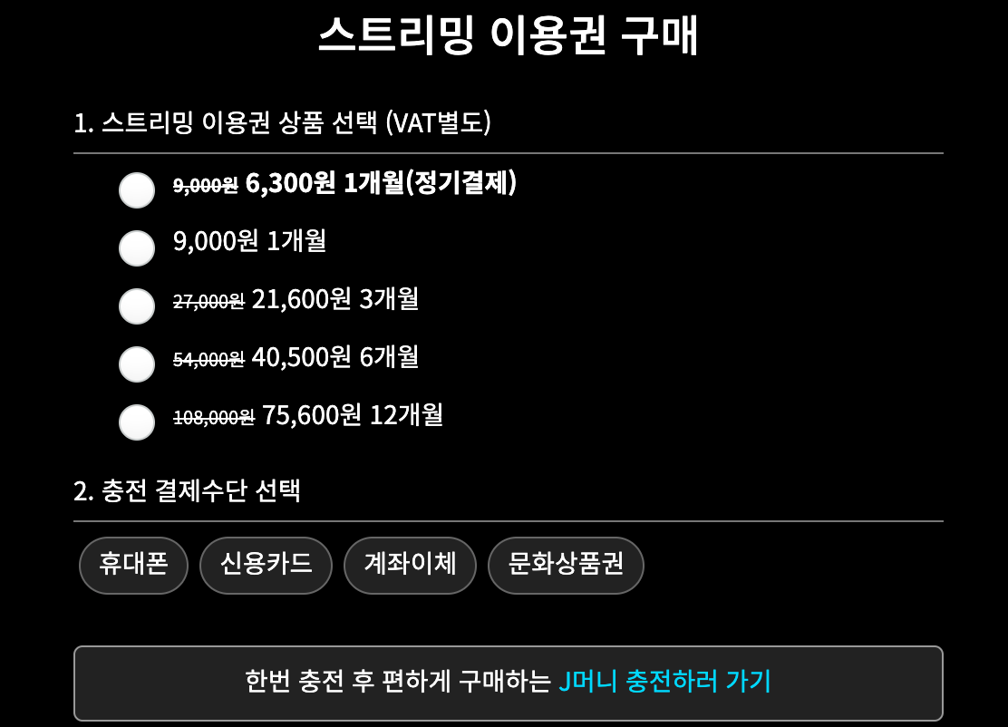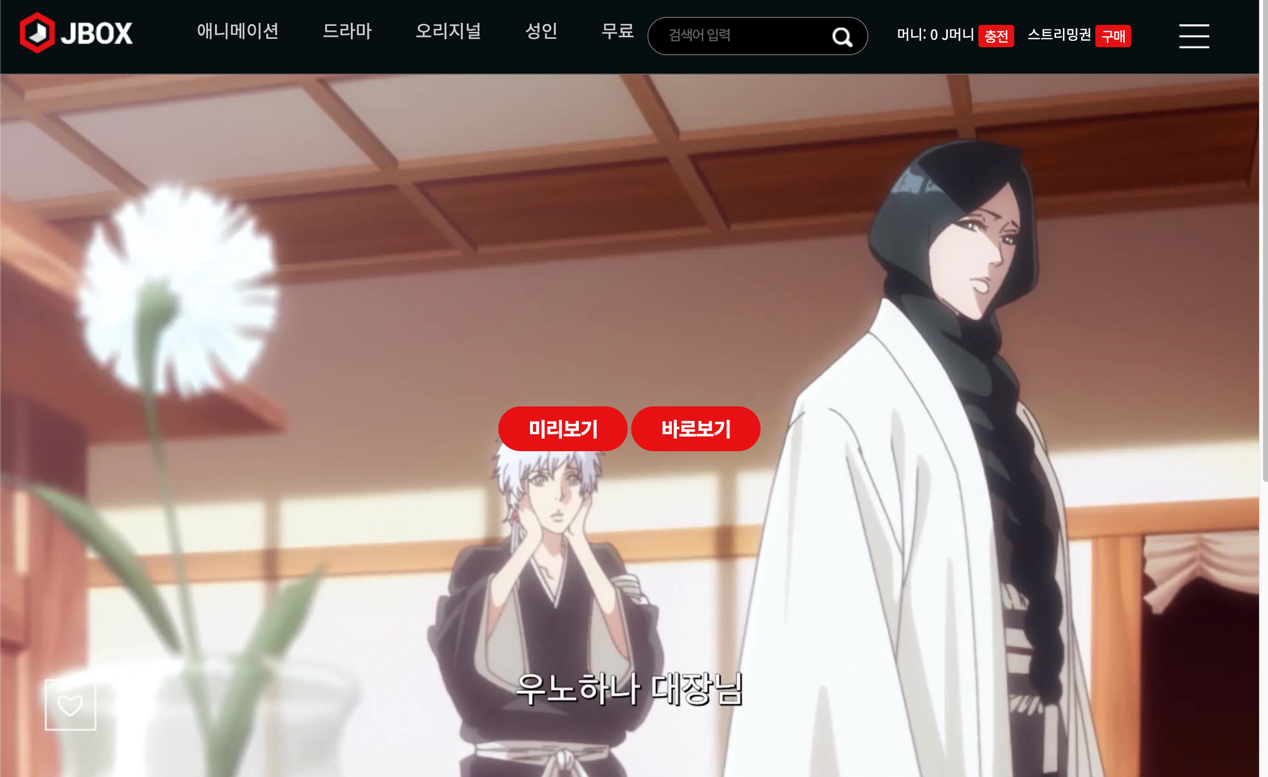 블리치 천년혈전을 공식 다시보기하는 방법은 아래 제이박스를 이용하는 것입니다. 스트리밍 이용권을 판매하고 있으며 정기 결제를 하게 되면 조금 더 저렴하게 구매 시청이 가능합니다. 유료 서비스인 만큼 안정적이고 깔끔하게 시청할 수 있는 것이 큰 장점입니다.