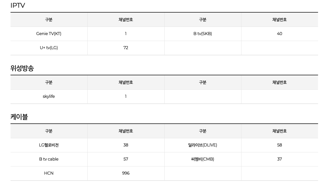 현재 지니TV와 ENA 채널에서만 신병 시즌2가 시청이 가능합니다. 즉 OTT로 보기 위해서는 지니TV를 이용해야만 스마트폰이나 태블릿, PC에서 시청이 가능합니다. 그외에는 IPTV, 위성방송, 케이블에서 아래 번호에서 시청이 가능합니다.